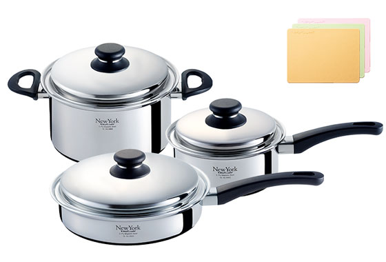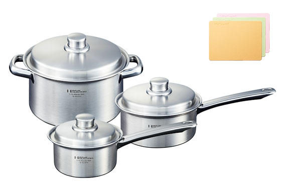 「熱しにくく冷めにくい」ステンレスと「熱しやすく冷めやすい」アルミニウムを幾重にも重ね全面多層にすることで、極めて高い熱吸収性・拡散性・保温性が生まれます。