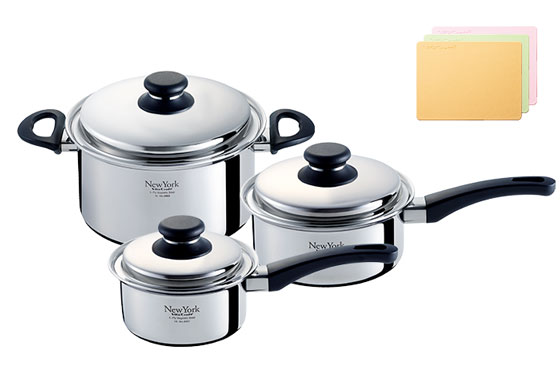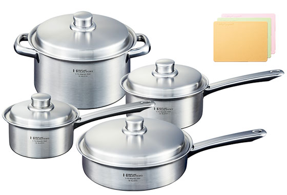 ステンレス鍋の本体は全面多層構造になっており、層が多いほど熱効率が良くなります。また、鍋本体の研磨加工は鏡面(ミラー)加工とツヤ消し加工があります。