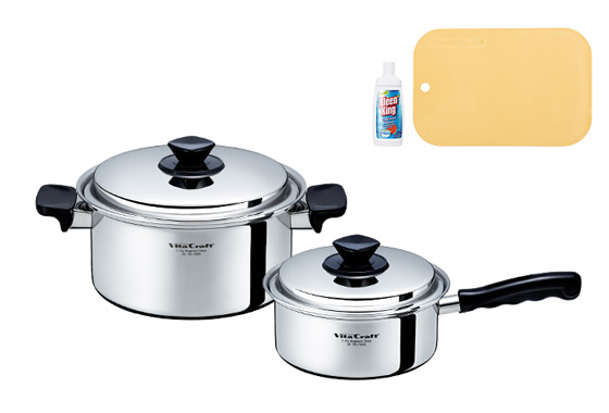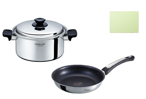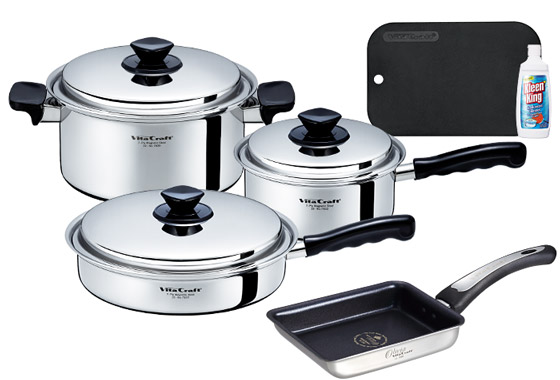 ビタクラフトデビューです。ハンドルは持ちやすいし、何よりオールステンレスでキレイ!お料理が楽しくなります。ソテーパンが思っていた以上に使い勝手が良く、一番活躍してくれそうです。