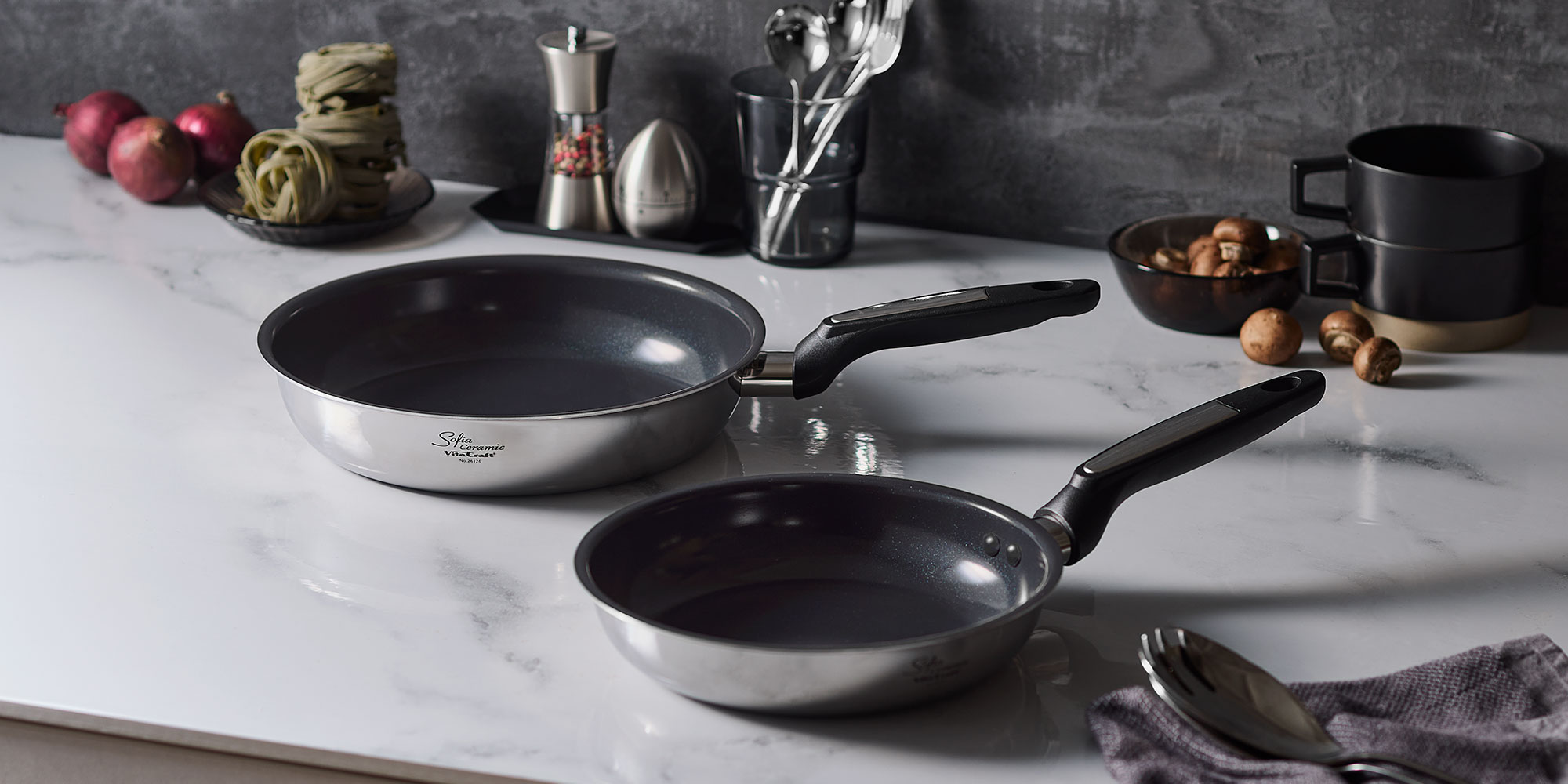 ダイヤモンドパウダー配合で耐久性をアップしたセラミックフライパン。