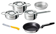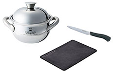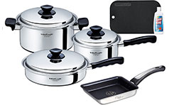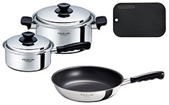 「ヒューストン」の鍋 &フライパン 計4点と「抗菌まな板」ミニサイズの、お得な福袋セットです。