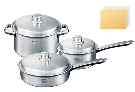 「熱しにくく冷めにくい」ステンレスと「熱しやすく冷めやすい」アルミニウムを幾重にも重ね全面多層にすることで、極めて高い熱吸収性・拡散性・保温性が生まれます。
