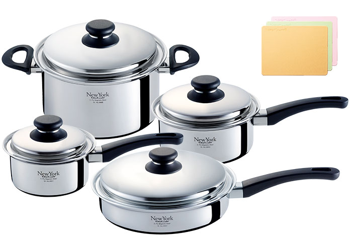 ステンレス鍋の本体は全面多層構造になっており、層が多いほど熱効率が良くなります。また、鍋本体の研磨加工は鏡面(ミラー)加工とツヤ消し加工があります。