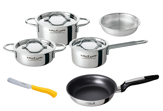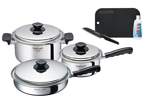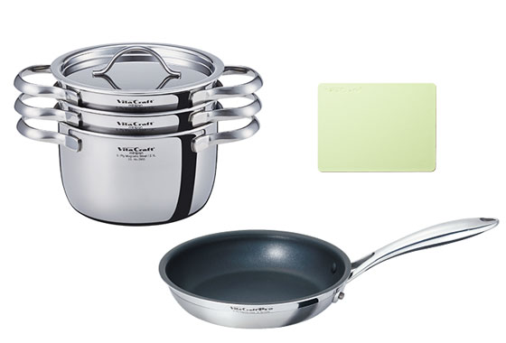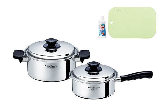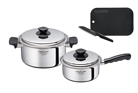 ビタクラフトデビューです。ハンドルは持ちやすいし、何よりオールステンレスでキレイ!お料理が楽しくなります。ソテーパンが思っていた以上に使い勝手が良く、一番活躍してくれそうです。