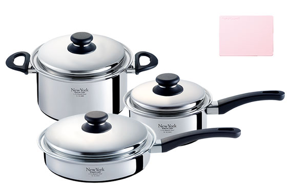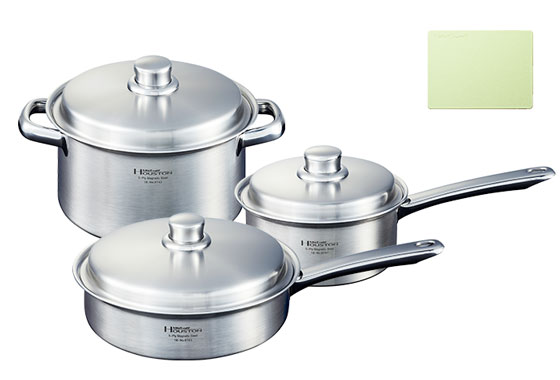 「熱しにくく冷めにくい」ステンレスと「熱しやすく冷めやすい」アルミニウムを幾重にも重ね全面多層にすることで、極めて高い熱吸収性・拡散性・保温性が生まれます。
